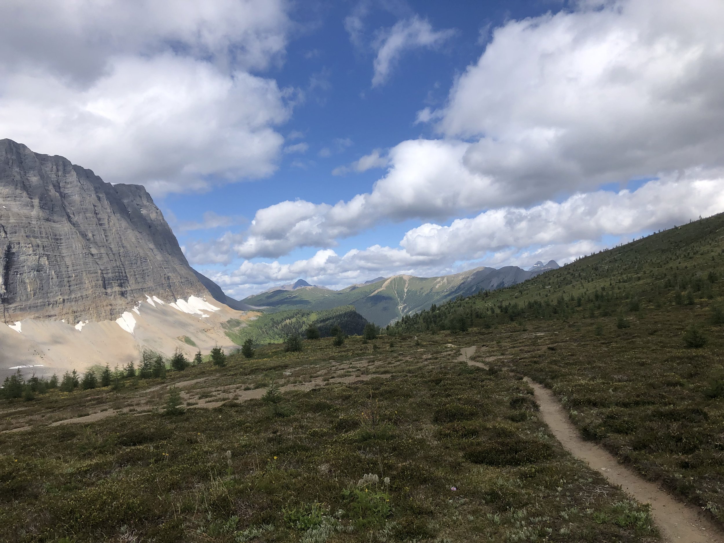 Shortly after leaving Helmet Falls Campground, you’ll start ascending towards Rockwall Pass. This is a lot of elevation gain, but is the only pass for the day if camping at Tumbling Creek Campground like we did.