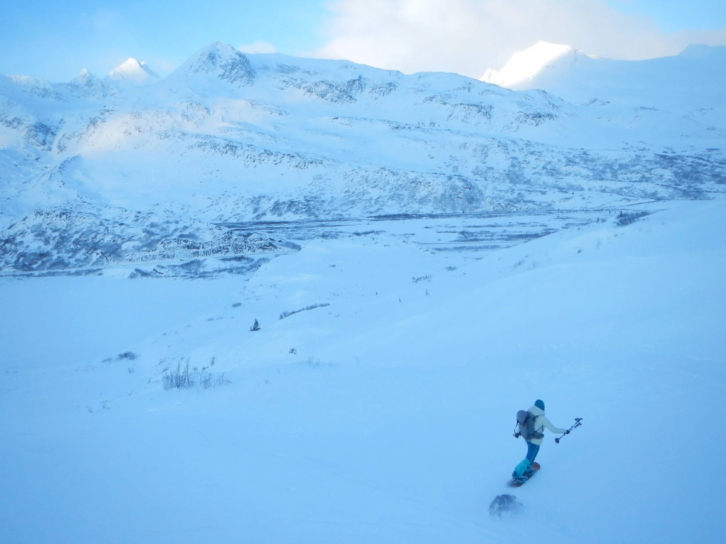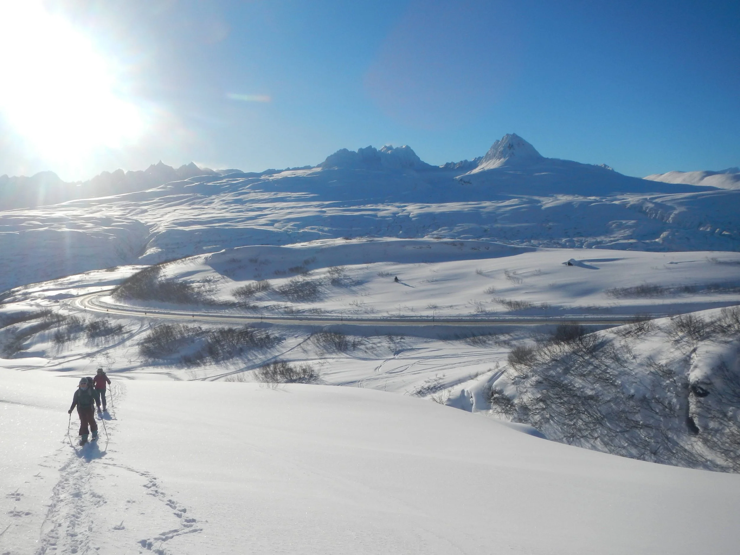 With over 700” of snow per year, Thompson Pass is a backcountry skiing mecca. Access to world-class ski lines can be found within a mile or two of the road. There are a handful of pull-outs to park at, and you can pick and choose where to ski. Having a snow machine will definitely increase your options. Early season skiing will likely involve a lot of bushwhacking, but it’s doable.